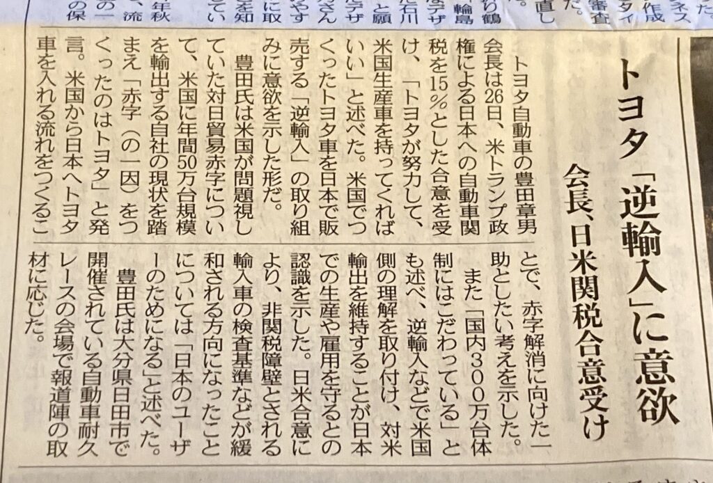 豊田章男会長が、アメリカ製トヨタ車を逆輸入すると言う。