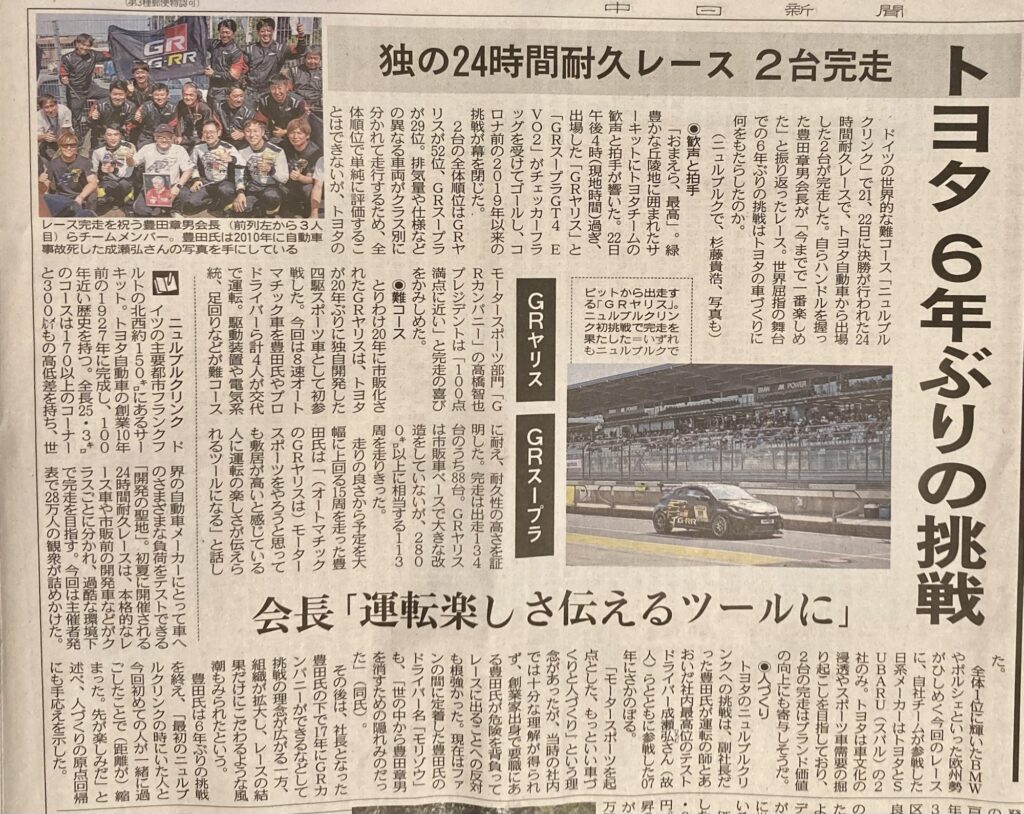 先々週、モリゾーことトヨタ自動車会長豊田章男氏が出場をして(彼が走ったのは15周=約300キロ!)、チームは完走した。