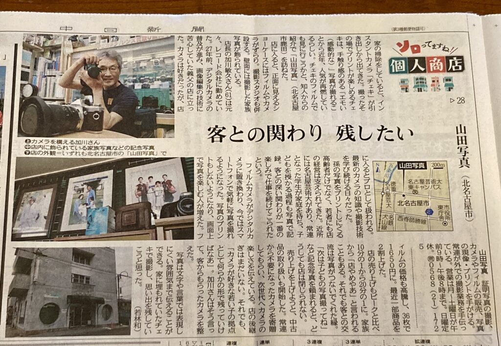 五月二十七日付中日新聞朝刊の尾張版に紹介された、山田写真の店主、加川さんを自転車で訪ねた。