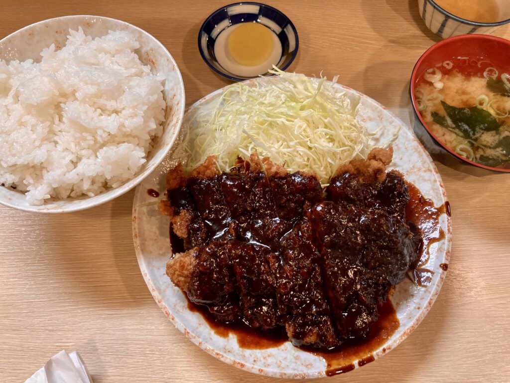 意気揚々とジャンボカツを注文したが、出てきた皿とご飯を見て後悔した(苦笑)。