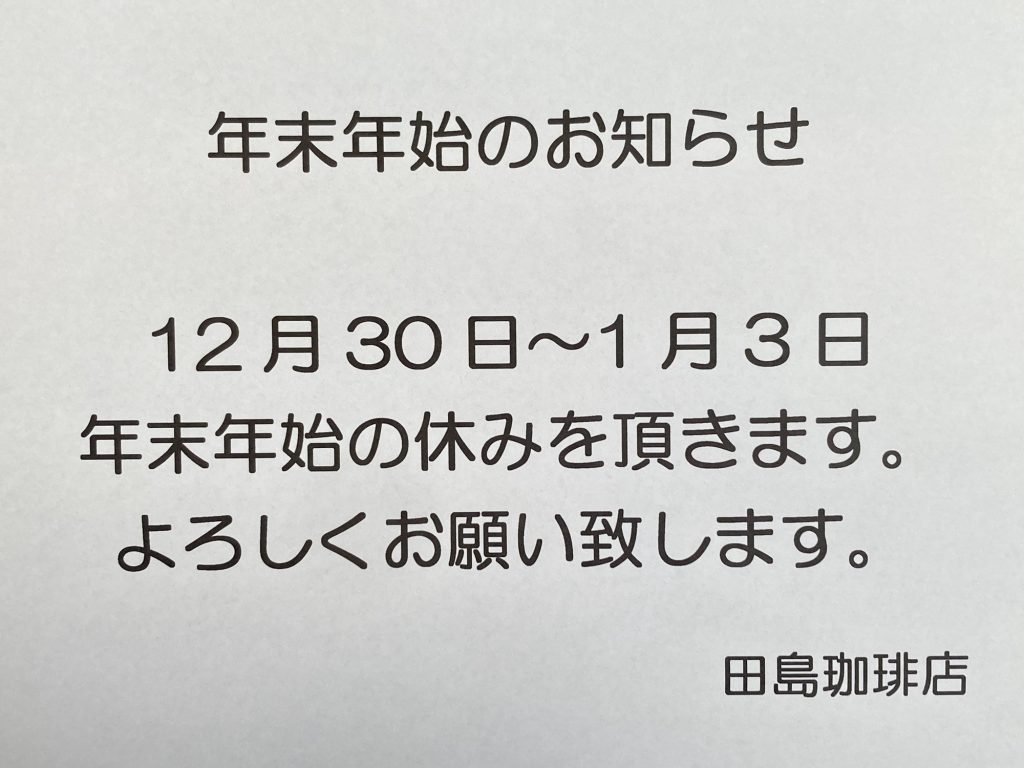 12月30日(月)〜1月3日(金)、 年末年始の休みをいただきます。 よろしくお願い致します。 ブログ 記事のシェアはこちら URLをコピーしました! 僕はずっと待っていた 年頭に 関連記事 知らない街を歩く 2026年2月6日 久しぶりの再訪 2026年2月5日 小旅行に 2026年2月4日 二月の定休日 2026年2月2日 友来たる 2026年2月1日 無事戻る 2026年1月31日 時代は行く 2026年1月30日 旅の本 2026年1月29日
