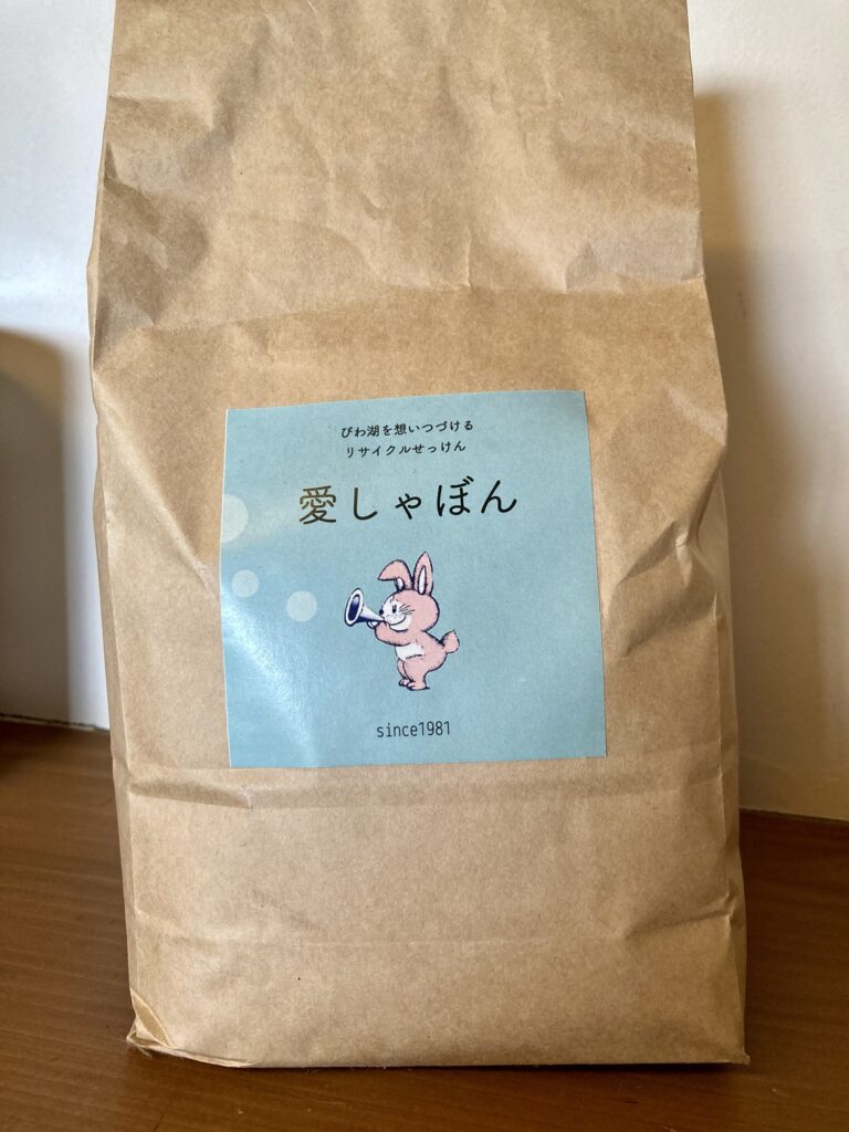 滋賀県の道の駅「あいとうマーガレットステーション」で販売している、廃食油リサイクルせっけん「愛しゃぼん」。