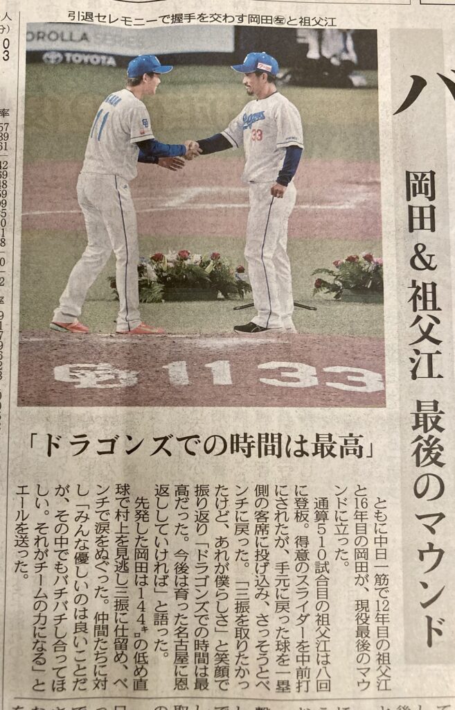 中日ドラゴンズの中田、岡田、祖父江。