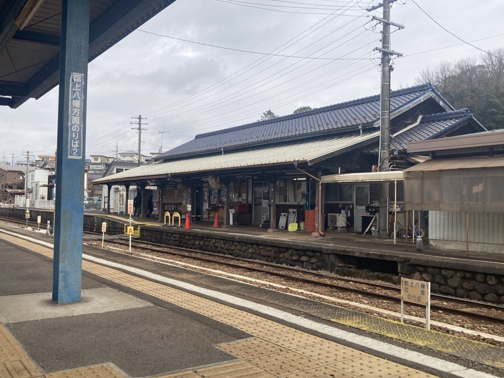店の近くの長良川鉄道 関駅のホームのベンチに座って食べた。